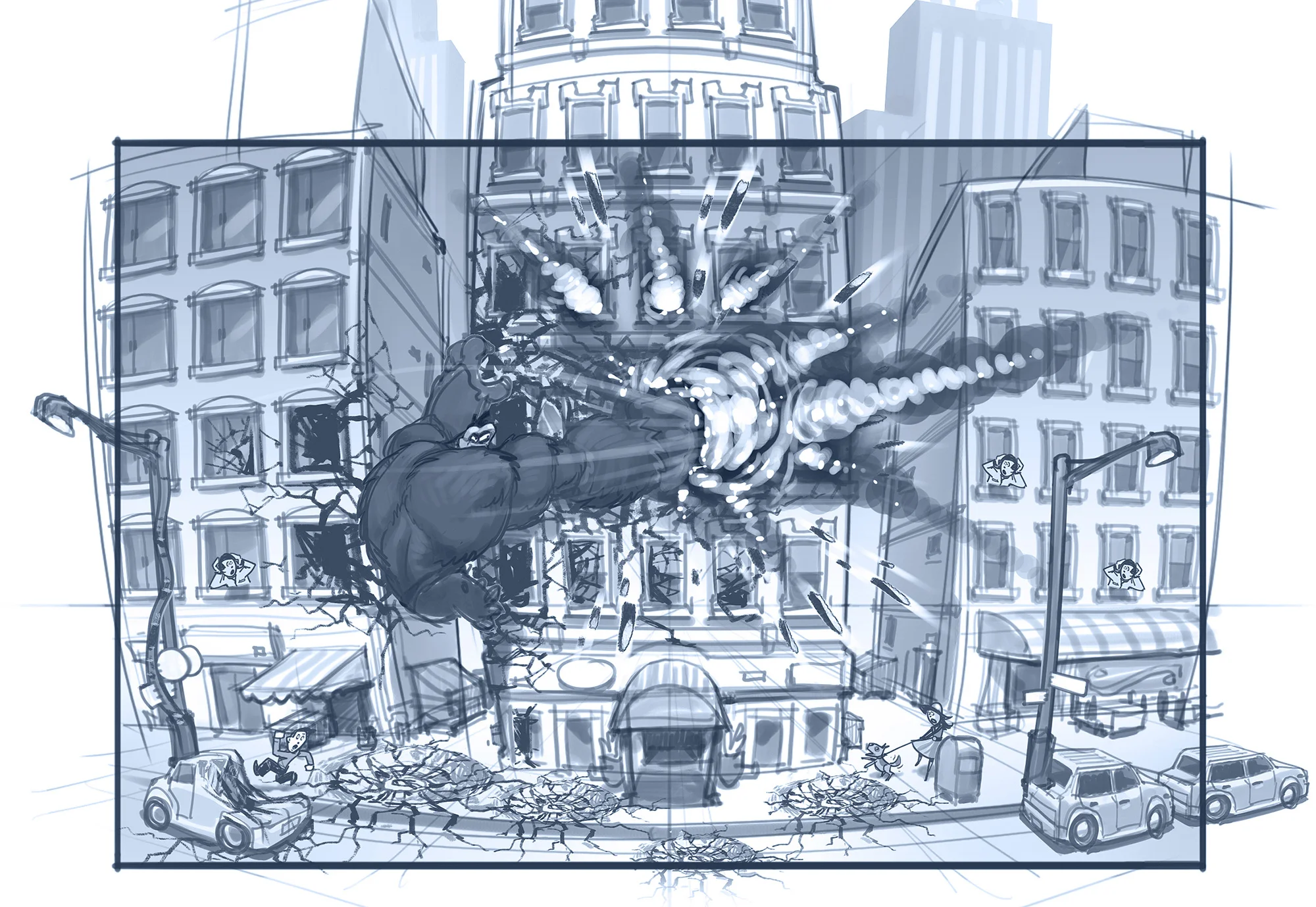 To give it it's own unique look, we juxtaposed the fun cartoony violence and destruction, against a colorful, richly set dressed world, with lighting that made it feel more like a contemporary animated feature.